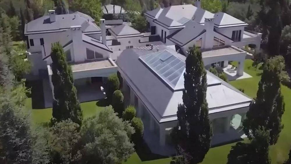 والقصر المشيد على 3000 متر مربع، به 8 غرف، وحمام سباحة داخلي وخارجي مدفأ، وغرفة سينما، وغرفة ساونا، وصالة ألعاب رياضية، وعدة غرف، وملعب غولف خاص.