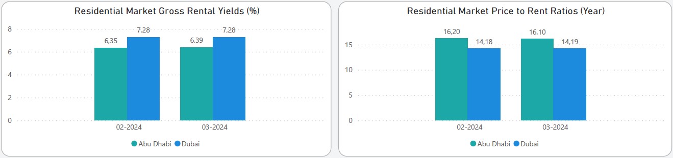 Abu Dhabi Residential Property Sales Price Index increased by 0.52 points, from 85.35 to 85.87, which represents an increase of 0.61% in March 2024. Prices also increased 7.53% y-o-y.